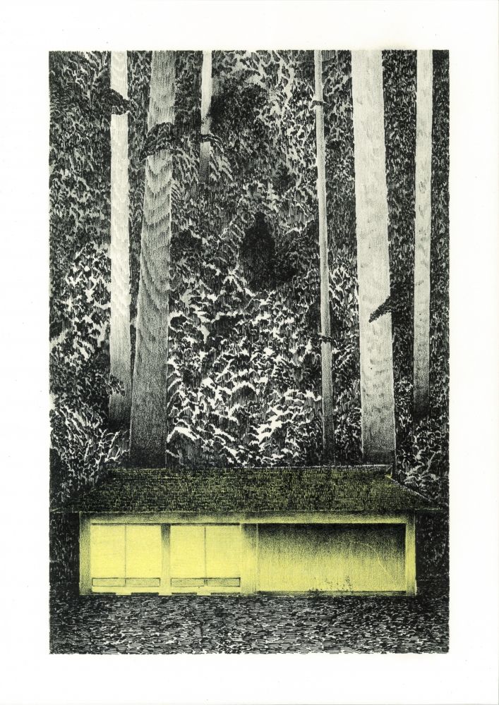 川原井康之さんは、大きく分けて2つのモチーフを軸にリトグラフ技法とペン画を用いて表現している作家さんです。抽象的な「流れ」、具体的な「家」。この2つをベースに創る川原井さんの作品からは日本的な余白を感じられる作品が多いと思います。各作品へコンセプトがじっくりと昇華され、繊細な描写と淡い色彩が織りなす独特な世界観がとても素敵だと思い、選出させていただきました。