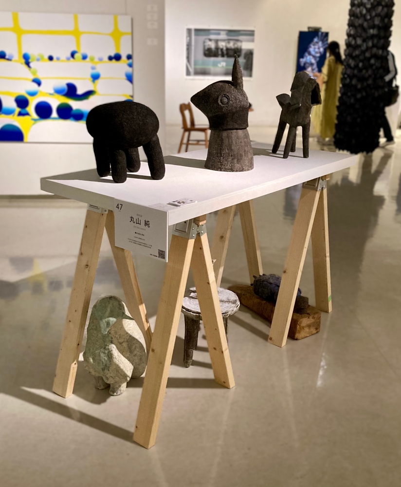 丸山純さんの作品はお世辞にも華やかとは言えない、アート公募展に必要とされる「目立つこと」や「大きいこと」からはかけ離れたものといえます。そのような特性にも関わらず、IAGにて準グランプリを勝ちとれたのは、一重にプリミティブな造形に魅力が集約されていたからに他なりません。