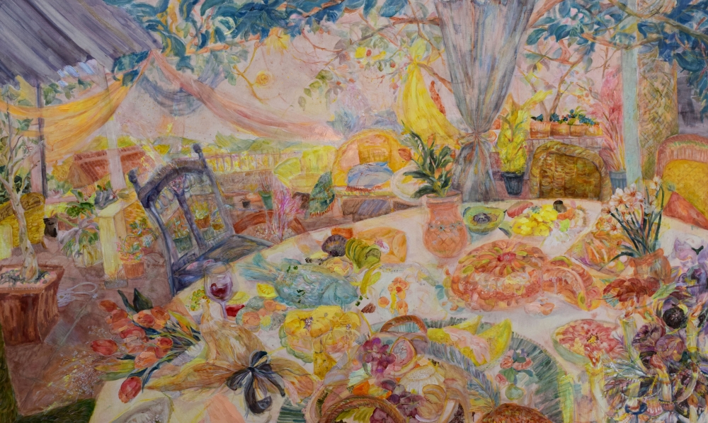 美術史や美術評論等で言われる「絵画の死」と、それでも「絵画が死なない理由」を修士論文で自分なりに研究していました。その中で、まず時代を遡って「誰もが絵画が死ぬとは考えていないであろう時代」の事を思って作品を描くことで、自身の基礎的な部分を見つめ直したいというのが、この二層構図(プラトー構図)で静物・人物・風景を描く様式です。まだまだ実力不足ですが、今後少しずつ納得のいく形で発展させたいと考えています。