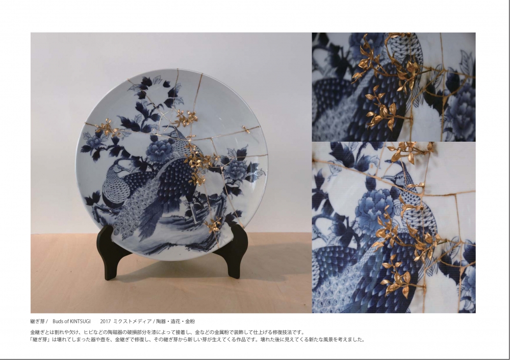 今回大賞に選ばれた石川遊雪さんの作品は、最後までこちらの期待に答えてくれた作品だといえます。 一次審査の時点では作品1点のみで工芸及び彫刻といった造形作品としての見方でしたが、展示の際は作品の数を増やしたことでまた新たな見方ができました。金継ぎ技術と生け花という関係性は、破壊と再生を込めているようなコンセプチャルアートのようにも受け取れます。幅広いフィールドを持つ石川さんだからこその発想で、正にジャンルの広い『IAG AWARDS』に相応しいの作品だと思います。